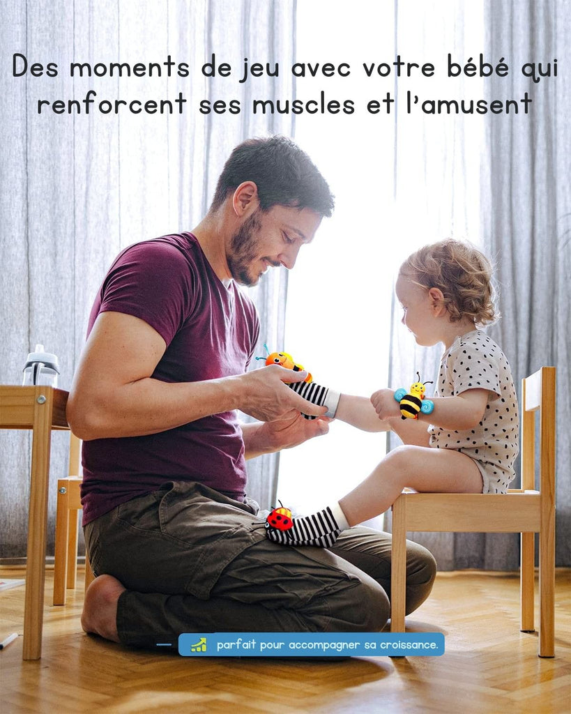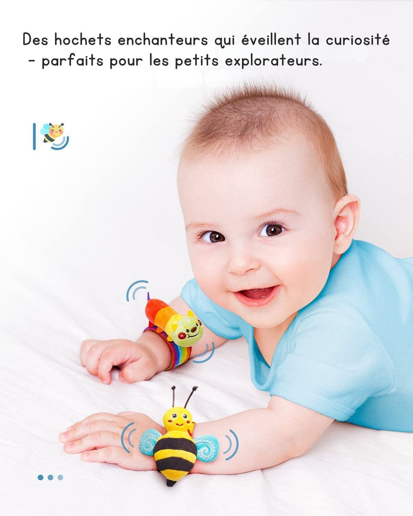 J’étais sceptique au début, pensant que les hochets ne tiendraient pas bien aux chevilles, mais au final, ils restent parfaitement en place ! Mon bébé les adore, les couleurs sont vives et les sons l’attirent sans être trop forts. C’est devenu son jouet préféré, et surtout, ça me permet d’avoir quelques minutes de calme pendant qu’il s’amuse tout seul 😍