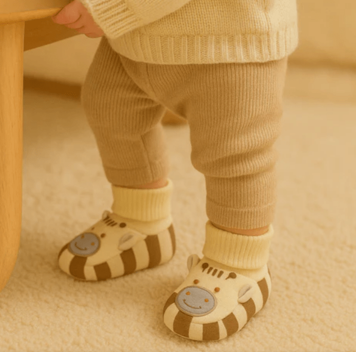 Avec leurs motifs animaux adorables et leurs couleurs vives, ces chaussons allient confort et mignonnerie. Bébé sera à croquer à chaque pas !