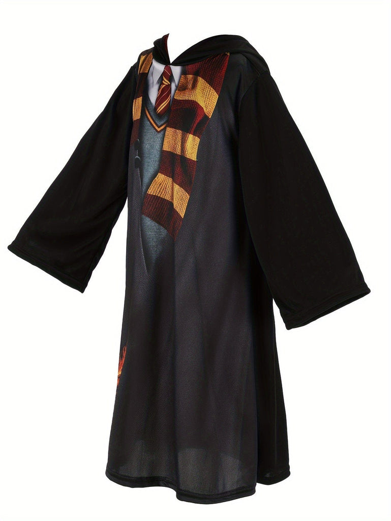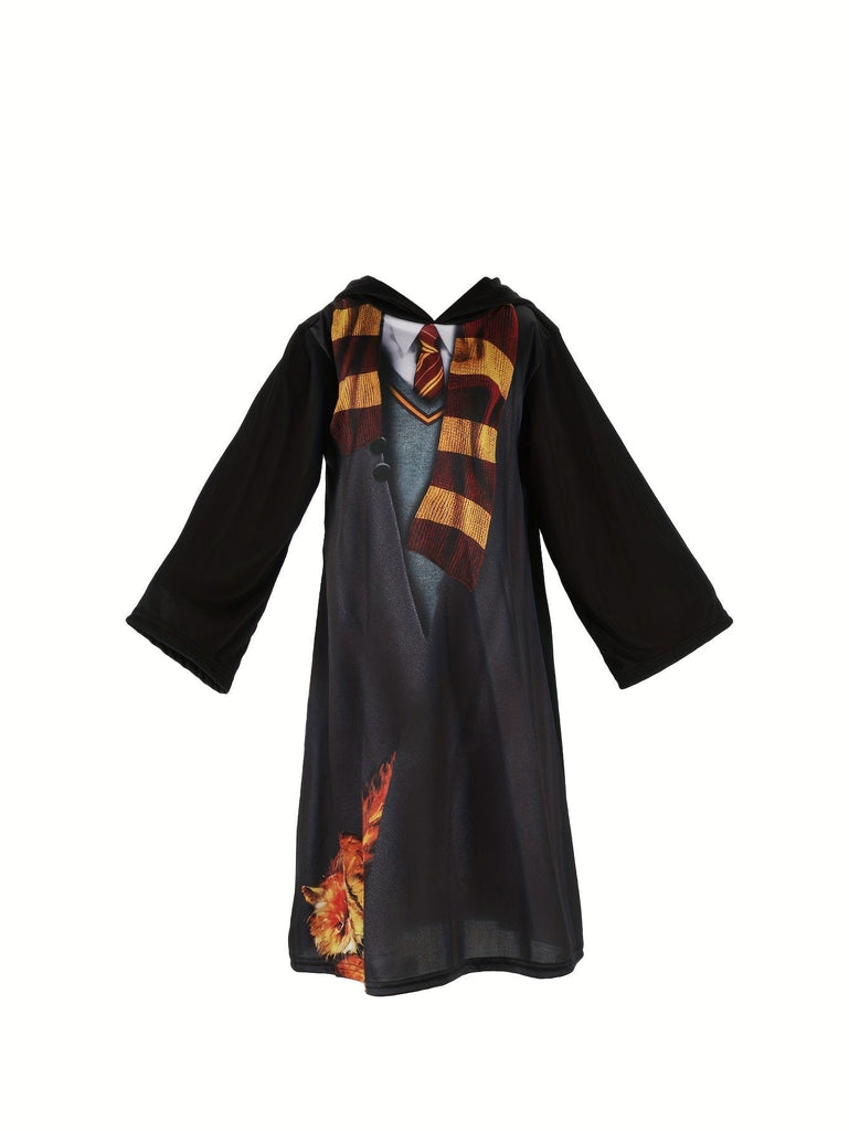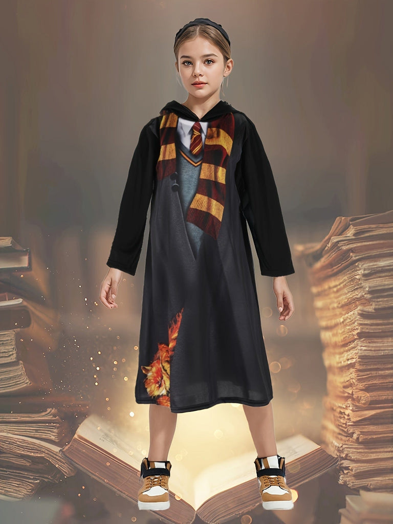 Questo abito con cappuccio per ragazza riprende i codici dello stile uniforme scolastico con un tocco moderno. Il suo taglio dritto e le maniche lunghe lo rendono un capo pratico da indossare quotidianamente come per occasioni speciali. Il motivo fantasia aggiunge una nota giocosa all'insieme.