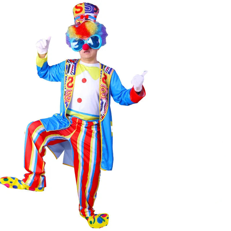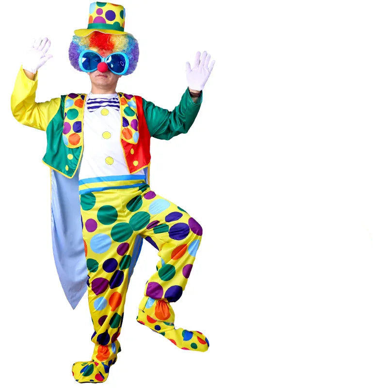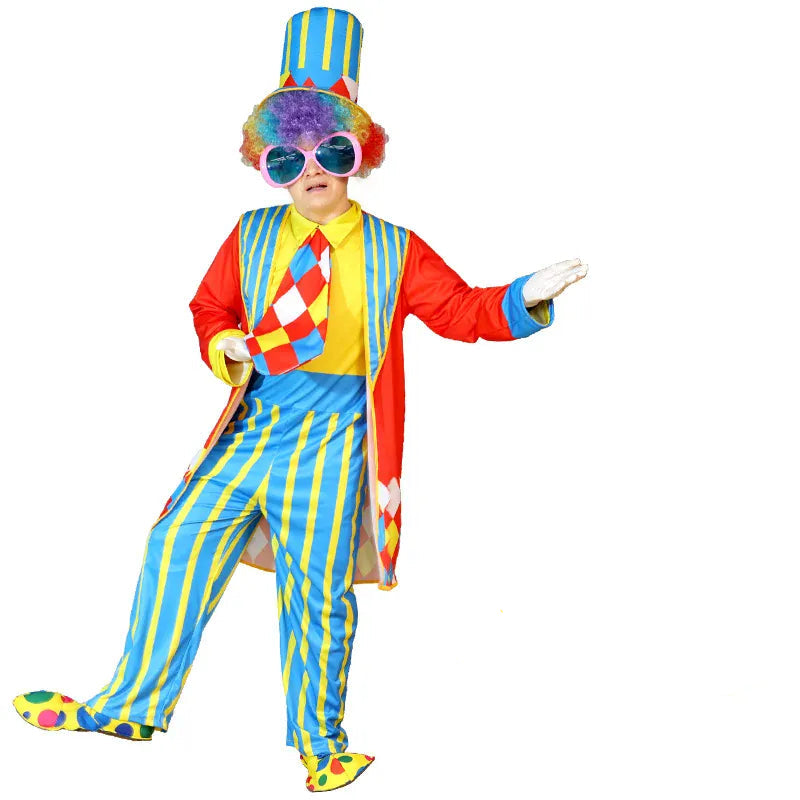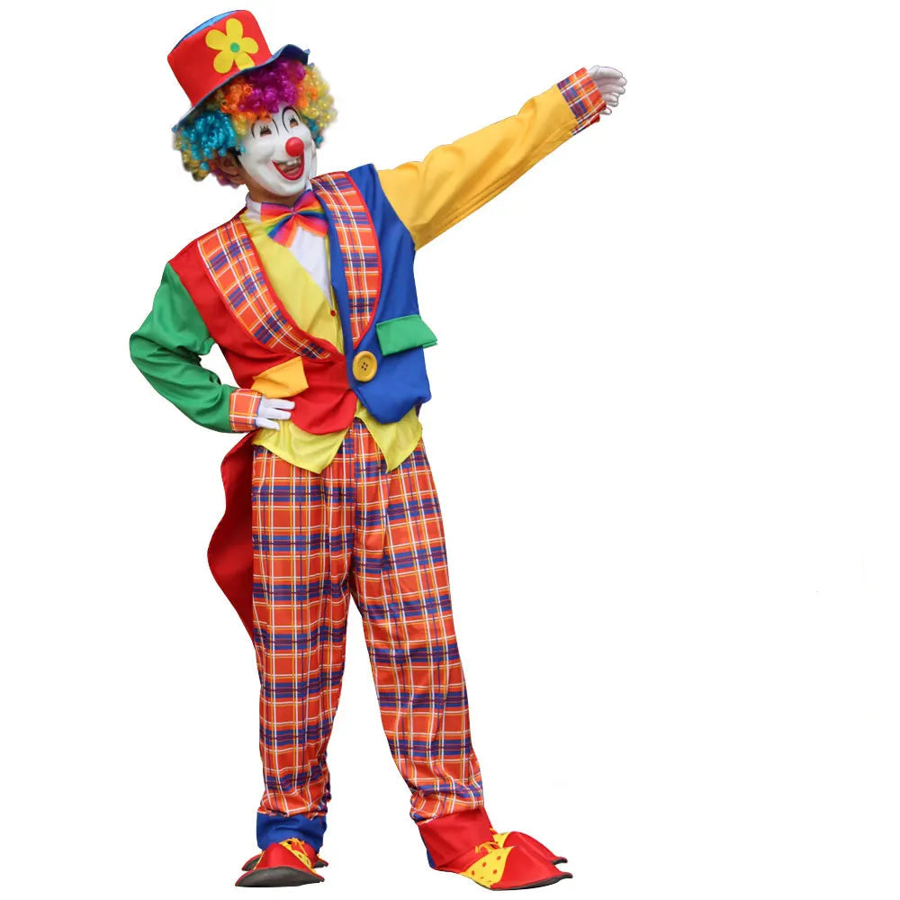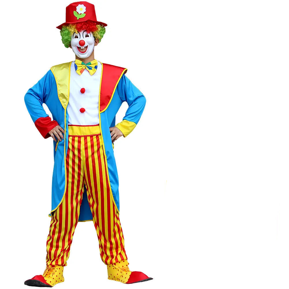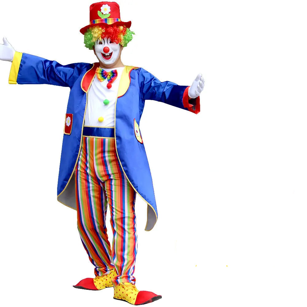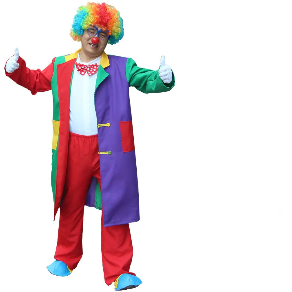 Disfraz de payaso adulto colorido – ideal para espectáculos de escenario, animaciones de fiesta, carnaval o Halloween.