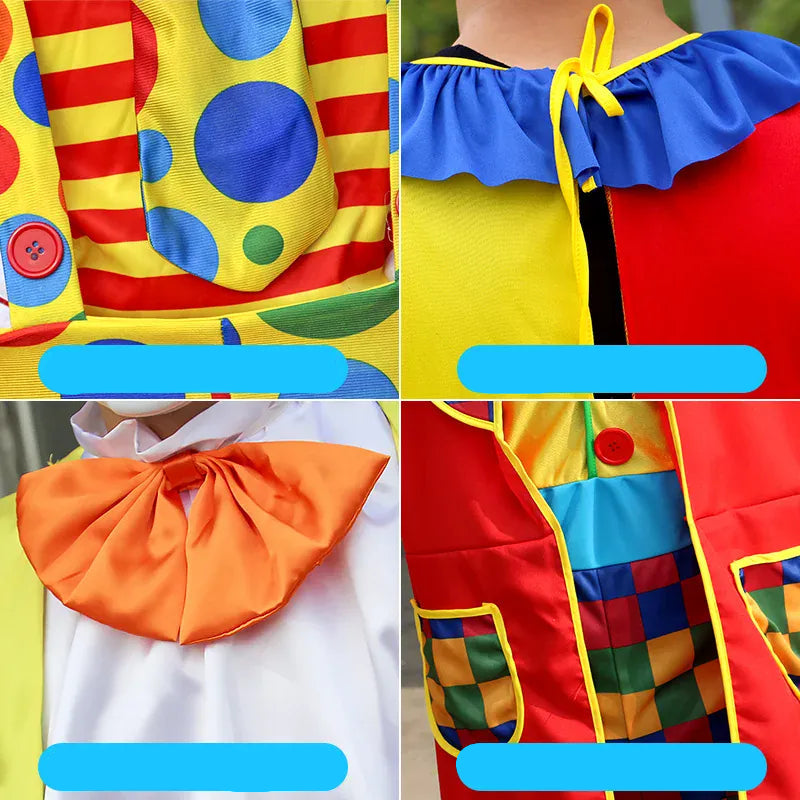 ¡Haz reír y maravilla a tu público con este disfraz de payaso profesional y lleno de color!