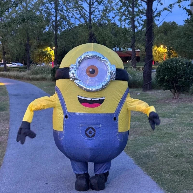 Crea sensación con este disfraz inflable de minion – ¡diversión garantizada en cada aparición!