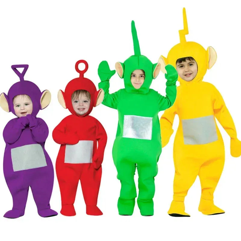 • Inspirado en los famosos Teletubbies: Encuentra a Tinky Winky (morado), Dipsy (verde), Laa-Laa (amarillo) y Po (rojo) con atuendos fieles a los personajes originales.