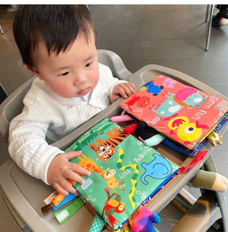 Ajoutez une touche éducative et sensorielle à la routine de votre bébé avec ce livre doux et ludique.