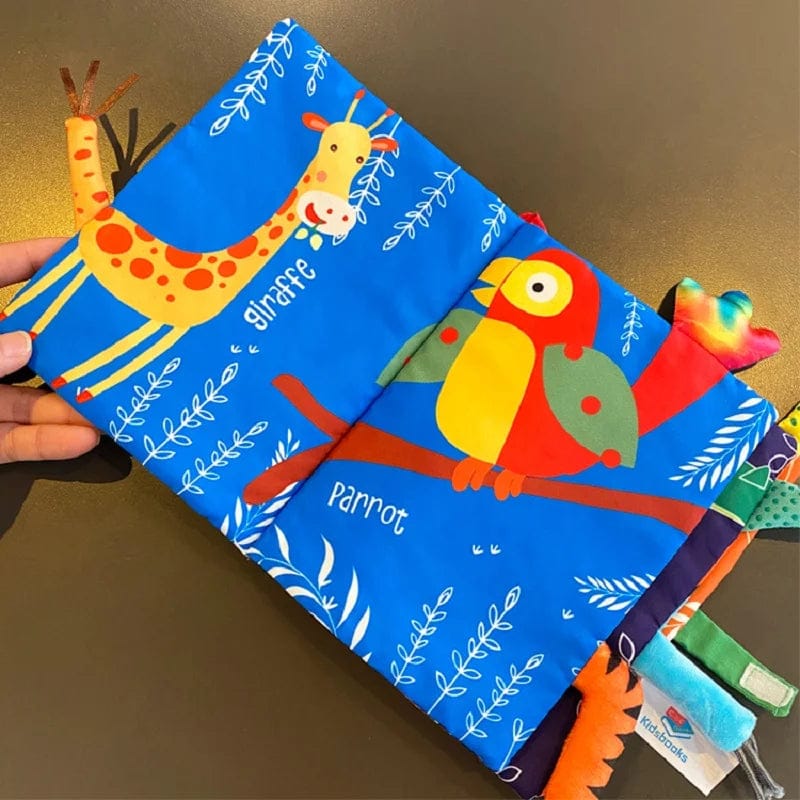 Livre Tissu Bébé Éducatif Animaux – Bruit Papier & Hochet