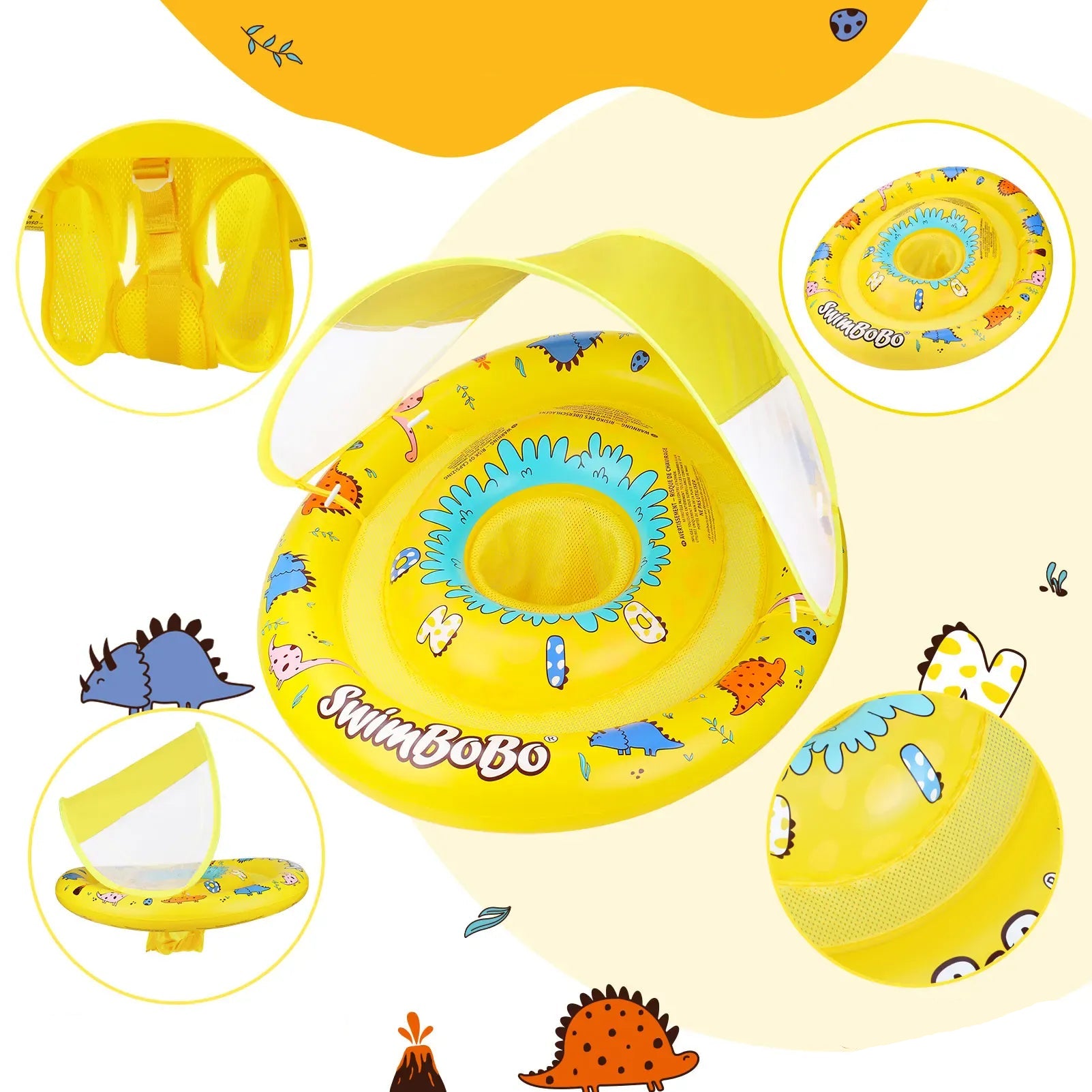 Parasole protettivo: canopy integrato che aiuta a proteggere la testa e il viso del bebè dal sole durante i giochi in acqua.