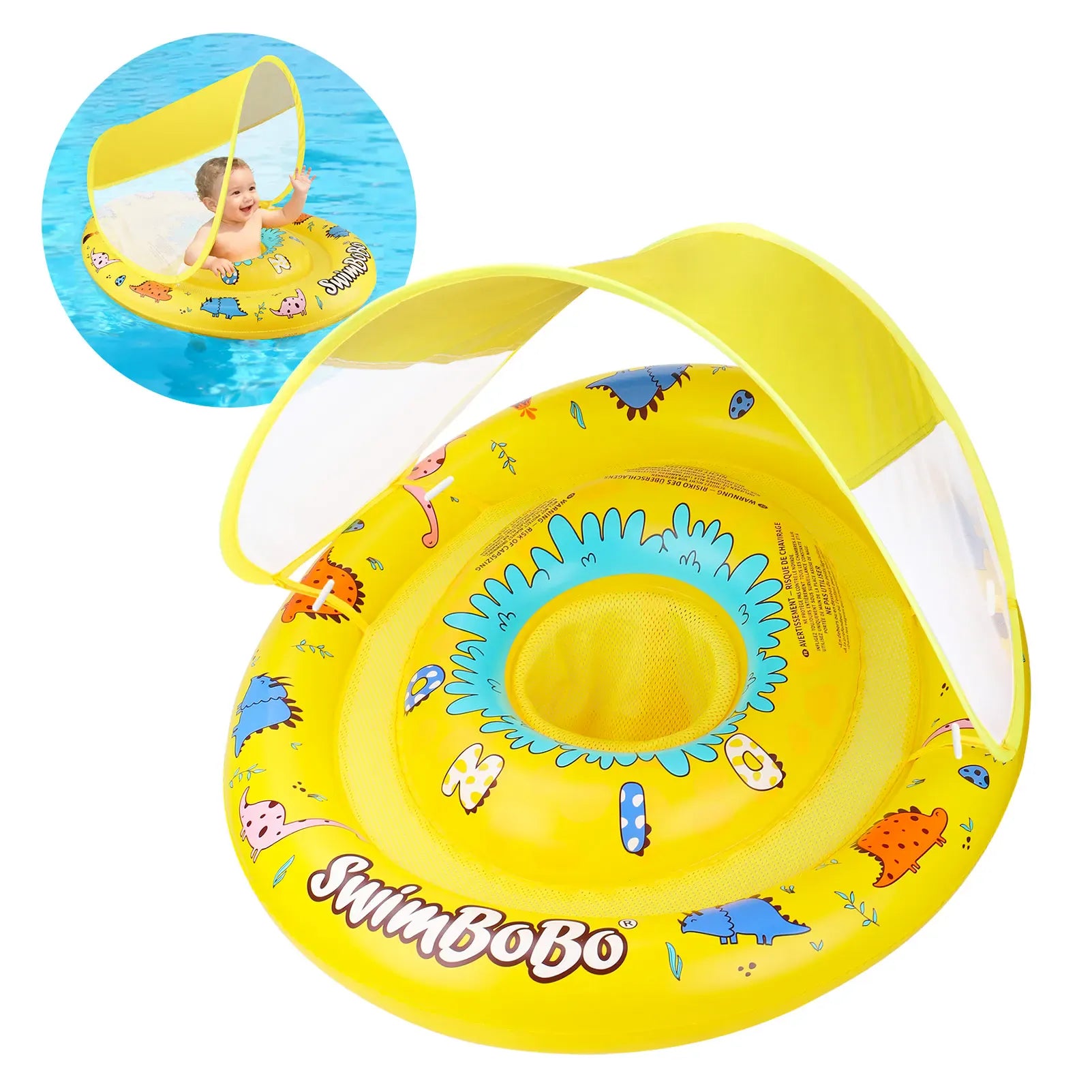 Ciambella per bebè con parasole integrato – ideale per bagni estivi confortevoli e divertenti.